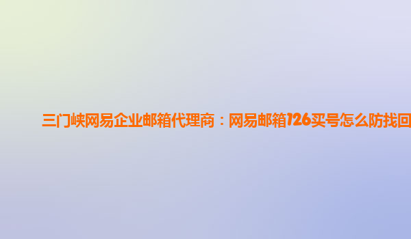 2024-02-28三门峡网易企业邮箱代理商:网易邮箱126买号怎么防找回 在使用网易企业邮箱的过程中,很多人会遇到账号被盗或者忘记密码等问题,导致无法正常使用邮箱。为了避免这些情况的发生,我们可以采取一些措施来保护我们的...