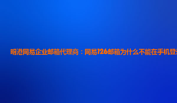 2024-02-28网易企业邮箱代理商:网易126邮箱为什么不能在手机登录了 背景介绍 网易企业邮箱是一款功能丰富、安全可靠的企业邮箱产品,是众多企业和个人使用的首选邮箱。不过最近有用户反映,他们无法在手机上登录网易126邮箱...