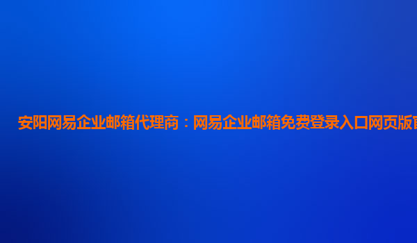 2024-02-28安阳网易企业邮箱代理商:网易企业邮箱免费登录入口网页版官网下载 网易企业邮箱是一款基于web的企业电子邮件管理解决方案,为企业提供高效、便捷、稳定、安全的邮件解决方案。随着企业信息化程度的提升,在线交流...
