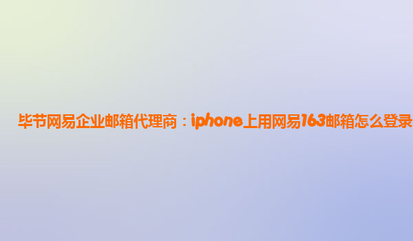 2024-02-28毕节网易企业邮箱代理商 如何在iPhone上登录网易163企业邮箱 作为一款全面覆盖邮件、日历、联系人、任务管理等多项功能的企业邮箱,网易163企业邮箱已经成为了很多公司和企业的首选。对于很多人来说,在移动设备上...