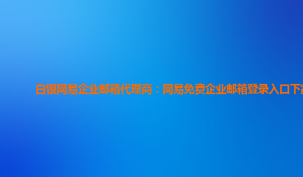 网易企业邮箱代理商:网易免费企业邮箱登录入口下载 随着互联网信息化的发展,对于公司来说,拥有一款高效便捷的企业邮件系统尤为重要。网易企业邮箱作为国内领先的企业邮件提供商之一,可以帮助企业实现高效沟通、...