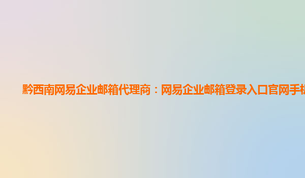 2024-02-28仁怀网易企业邮箱代理商:网易邮箱怎么注册淘宝 网易企业邮箱优势 作为国内知名的企业级邮件服务提供商,网易企业邮箱具备以下优势: 服务器位于国内,速度快,稳定性高; 安全可靠,拥有完善的防垃圾邮...