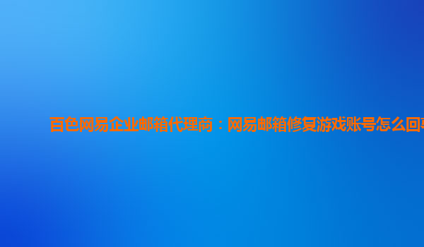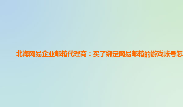 2024-02-28北海网易企业邮箱代理商:买了绑定网易邮箱的游戏账号怎么办 在现今这个数字化时代,很多人都会通过购买游戏账号来获得更好的游戏体验。但是,有些人会遇到一些问题,尤其是当他们购买的游戏账号绑定了网易企业邮箱...