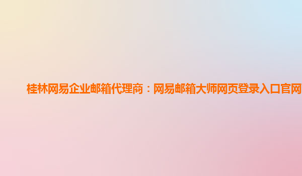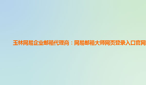 2024-02-28桂林网易企业邮箱代理商:网易邮箱大师网页登录入口官网下载 作为一家专业提供企业邮箱服务的代理商,我们力荐网易企业邮箱。网易企业邮箱具有以下几大优势: 1.稳定可靠 网易企业邮箱使用阿里云服务器,拥有24小...