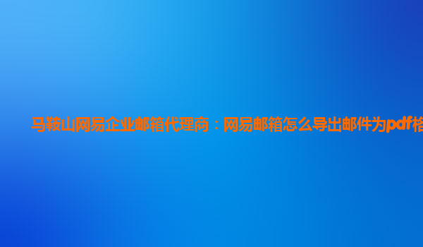 2024-02-27马鞍山网易企业邮箱代理商:网易邮箱怎么导出邮件为pdf格式 随着互联网的发展,电子邮件已经成为我们日常工作中必不可少的沟通工具。在使用网易企业邮箱的过程中,有时候我们需要把重要的邮件保存为PDF格式,以便于...