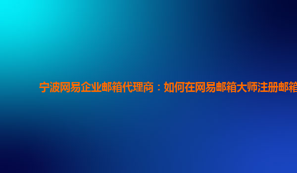 2024-02-27温州网易企业邮箱代理商:如何用网易邮箱大师注册邮箱 作为温州网易企业邮箱的代理商,我们深知网易企业邮箱在企业办公中的重要性。网易企业邮箱提供了稳定可靠的企业邮箱服务,让企业能够更高效地沟通和协作。下面...