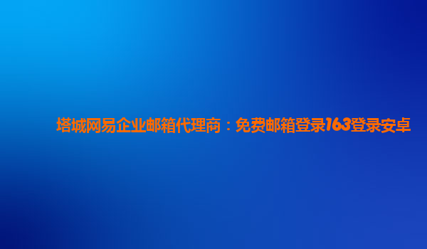 2024-02-26塔城网易企业邮箱代理商:免费邮箱登录163登录安卓 网易企业邮箱是一款功能强大的企业邮箱服务,为企业提供了完善的邮箱管理和沟通工具,帮助企业提高工作效率。作为塔城网易企业邮箱代理商,我们将为您介绍网易企业...