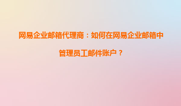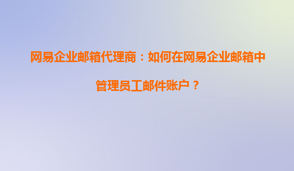 2025-09-17网易企业邮箱代理商指南:高效管理员工邮件账户 一、网易企业邮箱的核心优势 作为国内领先的企业级邮箱服务商,网易企业邮箱凭借稳定的系统架构、强大的安全防护和人性化管理功能,成为超过80万家企业...