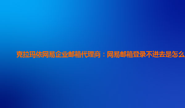 2024-02-26克拉玛依网易企业邮箱代理商:网易邮箱登录不进去是怎么回事 近年来,随着企业信息化的深入发展,越来越多的企业开始使用专业的企业邮箱服务来管理和发送邮件。作为国内领先的互联网企业,网易推出了企业邮箱服务,...