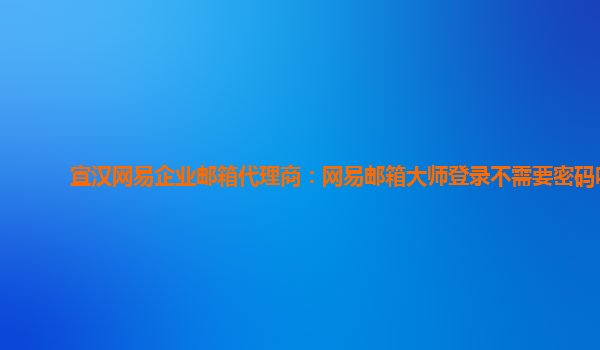 2024-02-26宣汉网易企业邮箱代理商:网易邮箱大师登录不需要密码吗 作为宣汉地区的网易企业邮箱代理商,我们经常接触到一些关于网易邮箱大师的疑问。其中一个常见问题就是:网易邮箱大师登录不需要密码吗? 首先,让我...