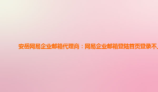 2024-02-26安岳网易企业邮箱代理商:网易企业邮箱登陆首页登录不上 最近有用户反馈称,在使用网易企业邮箱时遇到了一些问题,其中包括无法登录到网易企业邮箱的首页。作为安岳网易企业邮箱的代理商,我们将针对这个问题进行分...