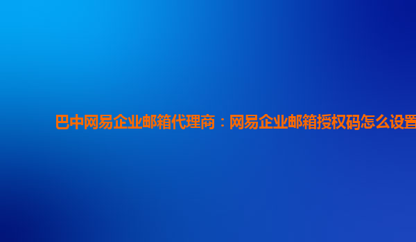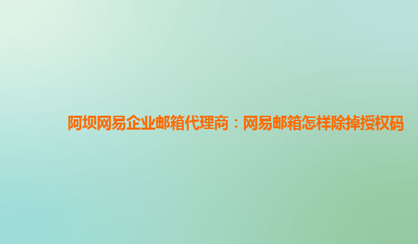2024-02-26阿坝网易企业邮箱代理商:网易邮箱怎样除掉授权码 网易企业邮箱是一款功能强大、稳定可靠的企业邮箱服务,广受企业和个人用户的欢迎。在使用网易企业邮箱的过程中,有时会遇到需要除掉授权码的情况。下面我们来看看...