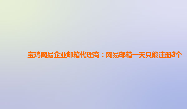 2024-02-26宝鸡网易企业邮箱代理商:网易邮箱一天只能注册3个 作为宝鸡地区的网易企业邮箱代理商,我们深知网易企业邮箱在企业办公中的重要性。不仅可以提高企业形象,还能提高工作效率和信息安全性。然而,有些用户可能会遇到...