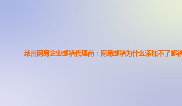 2024-02-25莱州网易企业邮箱代理商:网易邮箱为什么添加不了邮箱 随着互联网的快速发展,企业邮箱已经成为现代企业沟通的重要工具之一。而作为国内领先的企业邮箱服务提供商,网易企业邮箱在市场上拥有着广泛的影响力。 网...