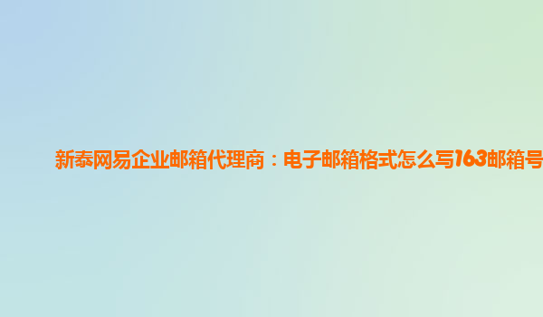 2024-02-25网易企业邮箱代理商:电子邮箱格式怎么写163邮箱号 在使用网易企业邮箱的过程中,我们经常需要设置或修改电子邮箱的格式。下面就让我们一起来了解一下如何正确地书写163邮箱号。 1.邮箱格式规范 在新泰网易企业...