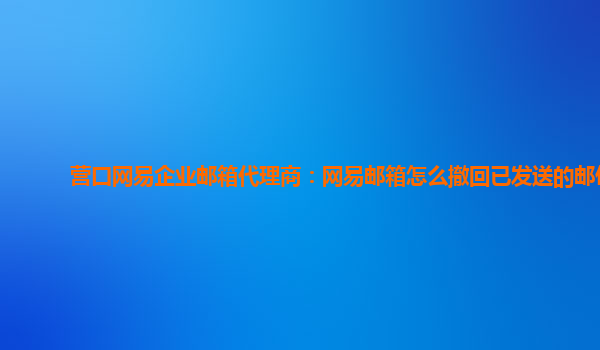 2024-02-25辽阳网易企业邮箱代理商:网易邮箱已发送的邮件怎么撤回 作为一家辽阳地区的网易企业邮箱代理商,我们深知网易企业邮箱在企业办公中的重要性。而在使用企业邮箱过程中,有时候我们不可避免地会发送错误的邮件,这时...