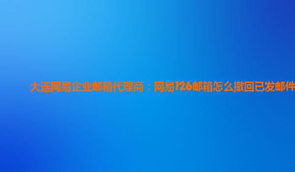 网易企业邮箱代理商:网易126邮箱如何撤回已发送邮件 作为一家专业的网易企业邮箱代理商,我们经常接到客户询问如何撤回已发送的邮件。在使用网易126企业邮箱的过程中,有时候我们会不小心发送了错误的邮件或者发现...