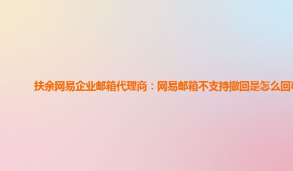 2024-02-25扶余网易企业邮箱代理商:网易邮箱不支持撤回是怎么回事 作为扶余地区的网易企业邮箱代理商,我们经常接到客户询问关于网易邮箱不支持撤回的问题。今天我们就来解答这个问题,并分享一下使用网易企业邮箱后...