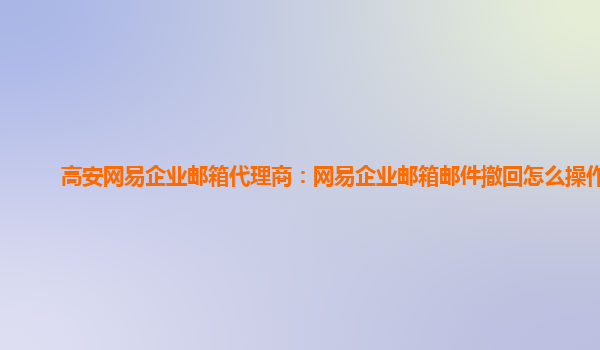 2024-02-25南城网易企业邮箱代理商:网易邮箱大师撤回失败是什么意思 在现代社会中,电子邮件已经成为人们工作和生活中不可或缺的一部分。对于企业来说,拥有一个稳定、安全、功能齐全的企业邮箱系统至关重要。而作为南城地区...