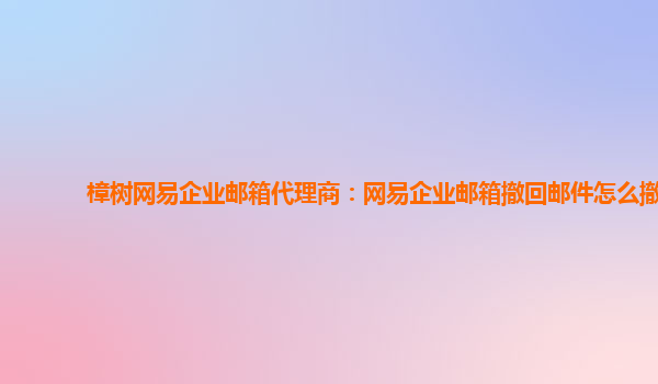 2024-02-24樟树网易企业邮箱代理商:网易企业邮箱撤回邮件怎么撤 一、网易企业邮箱的优势 作为国内领先的企业邮箱服务商,网易企业邮箱具有以下优势: 稳定可靠:拥有强大的服务器支持,确保企业邮箱的稳定运行。 安全防...