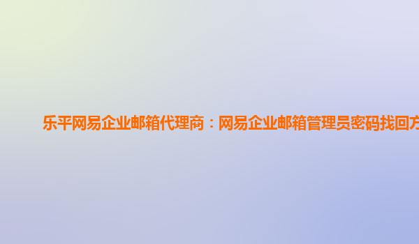2024-02-24乐平网易企业邮箱代理商:网易企业邮箱管理员密码找回方法 作为乐平地区的网易企业邮箱代理商,我们经常接到客户询问管理员密码找回的问题。以下是简单明了的方法: 密码找回步骤: 登录网易...