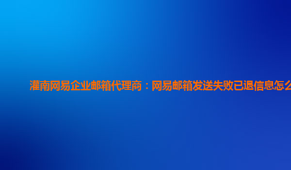 2024-02-24灌南网易企业邮箱代理商:网易邮箱发送失败已退信息怎么办 作为一家灌南地区的网易企业邮箱代理商,我们经常接到客户反映网易邮箱发送失败并收到已退信息的问题。这种情况可能会给企业邮件通讯带来一定的困扰,...