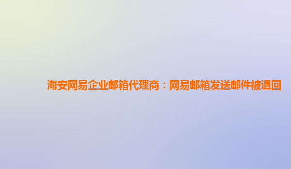 2024-02-24海安网易企业邮箱代理商:网易邮箱发送邮件被退回 问题描述: 最近有客户向我们反映,使用网易企业邮箱发送邮件时,经常会出现被退回的情况。这给工作带来了不便,需要解决这个问题。 网易企业邮箱优势: 作为一家...