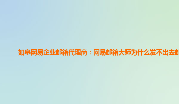 2024-02-24如皋网易企业邮箱代理商:网易邮箱大师为什么发不出去邮件 作为如皋网易企业邮箱代理商,我们经常接到客户投诉称他们无法发送邮件。这个问题一直困扰着很多网易企业邮箱用户,今天我们就来分析一下可能的原...