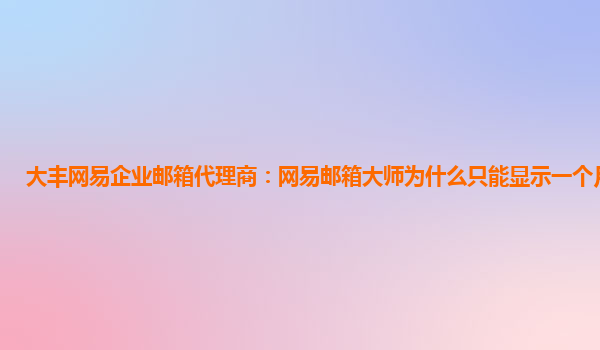 2024-02-24大丰网易企业邮箱代理商:网易邮箱大师为什么只能显示一个月的邮件 在使用网易企业邮箱时,有些用户可能会发现网易邮箱大师只能显示一个月的邮件。这种情况通常是由于邮箱设置或者邮件管理策略所导致的,下面我们来...