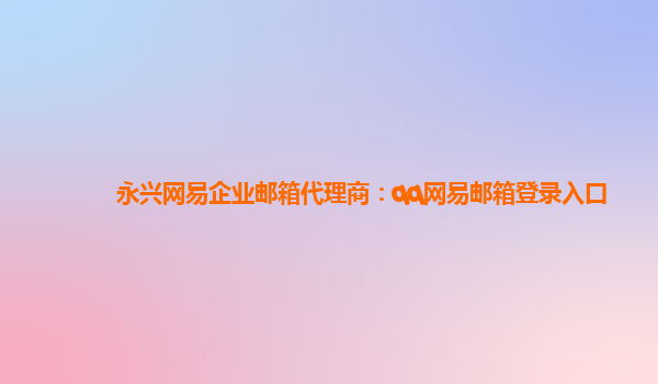 2024-02-24永兴网易企业邮箱代理商:qq网易邮箱登录入口 随着互联网的快速发展,电子邮件已经成为了人们日常生活和工作中不可或缺的重要工具。作为一家永兴网易企业邮箱代理商,我们致力于为客户提供高质量的企业邮箱服务。其...