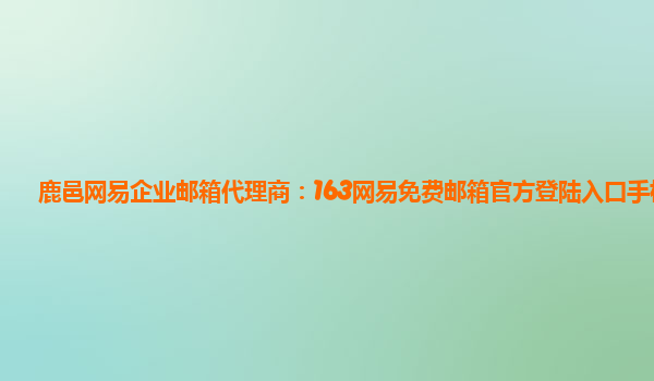 网易企业邮箱代理商:163网易免费邮--中文邮箱第一品牌 作为网易企业邮箱的代理商,我们深知163网易免费邮是中文邮箱领域的第一品牌,拥有诸多优势,为企业用户提供了便捷高效的邮件服务。下面让我们来感受一下...