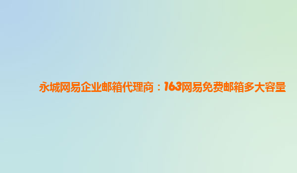2024-02-23永城网易企业邮箱代理商:163网易免费邮箱多大容量 网易企业邮箱是一款专门为企业客户提供的电子邮件服务,具有稳定可靠、安全高效等特点。作为永城网易企业邮箱代理商,我们为您介绍163网易免费邮箱的容量大小。 ...