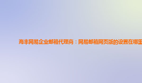 海丰网易企业邮箱代理商:网易邮箱网页版的设置在哪里 网易企业邮箱是一款功能强大、安全稳定的企业级邮箱服务,深受众多企业和机构的青睐。在使用网易企业邮箱时,我们常常需要对邮箱进行一些设置,以满足自己的需...