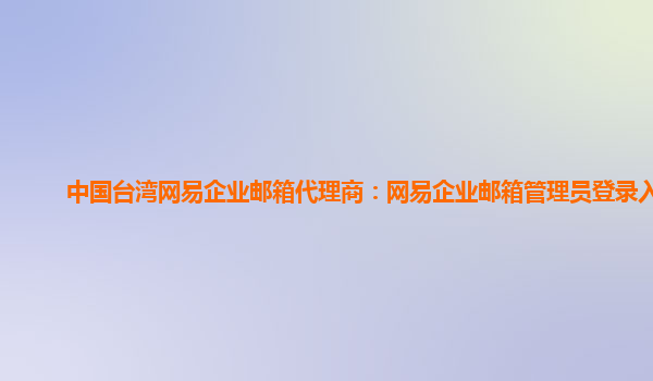 2024-02-22中国台湾网易企业邮箱代理商:网易企业邮箱管理员登录入口 作为中国台湾地区的网易企业邮箱代理商,我们深知企业邮箱在现代商务通讯中的重要性。网易企业邮箱作为国内领先的企业级邮件服务提供商,为企业用户提...