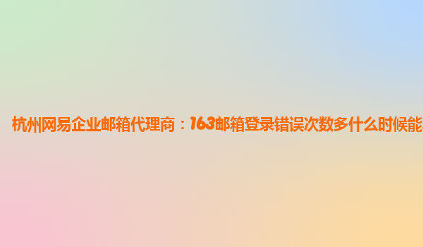 2024-02-22杭州网易企业邮箱代理商:163邮箱登录错误次数多什么时候能再登录 您好,作为杭州网易企业邮箱代理商,我们了解您对163邮箱登录错误次数多的疑问。在使用企业邮箱的过程中,有时候会出现登录错误的情况,让人很是困...