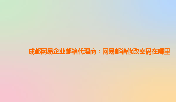 2024-02-21成都网易企业邮箱代理商:网易邮箱修改密码在哪里 作为成都网易企业邮箱代理商,我们常常接到用户询问的问题之一就是如何修改网易企业邮箱的密码。今天我们就来简单解答一下这个问题。 网易企业邮箱的...