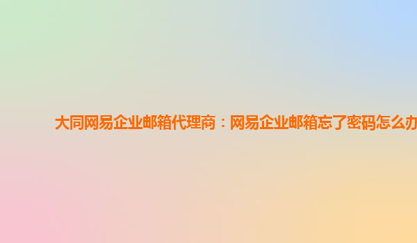 2024-02-21大同网易企业邮箱代理商:网易企业邮箱忘了密码怎么办 网易企业邮箱是一款专为企业定制的高效、安全、稳定的企业邮箱服务。与个人邮箱相比,网易企业邮箱在安全性、移动办公支持、团队协作等方面具有明显优势。...