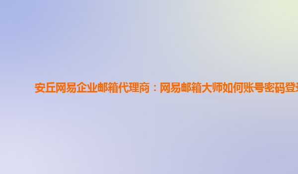 2024-02-21安丘网易企业邮箱代理商:网易邮箱大师如何账号密码登录 网易企业邮箱是一款专为企业用户打造的电子邮件服务,拥有安全稳定、易操作、功能丰富等优势,深受企业用户的青睐。下面就让我们来了解一下如何使用网易邮箱...