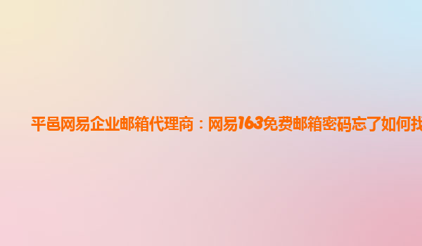 2024-02-21网易企业邮箱代理商:网易163免费邮箱密码忘了如何找回 随着互联网的普及和应用,电子邮件已经成为我们日常工作和生活中不可或缺的一部分。其中,网易企业邮箱作为深受用户信任的企业级邮箱服务商之一,为用户提供...