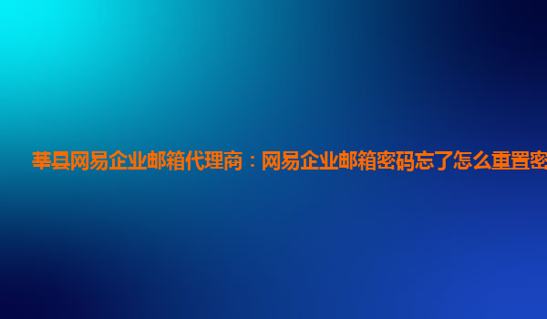 2024-02-21莘县网易企业邮箱代理商:网易企业邮箱密码忘了怎么重置密码知乎 作为莘县网易企业邮箱代理商,我们经常遇到客户因为忘记密码而需要重置密码的情况。今天我们就来解答这个问题,并借此机会分享一下使用网易企业邮箱...