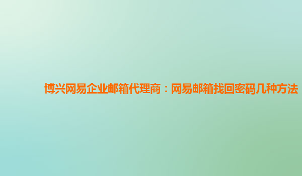 2024-02-21博兴网易企业邮箱代理商:网易邮箱找回密码几种方法 在使用网易企业邮箱的过程中,我们经常会遇到忘记密码的情况。这时候该怎么办呢?网易企业邮箱提供了多种方法来帮助用户找回密码。下面就让我...