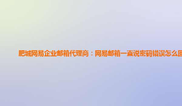 2024-02-20肥城网易企业邮箱代理商:网易邮箱一直说密码错误怎么回事 随着互联网的快速发展,电子邮件已经成为人们日常工作和生活中必不可少的沟通工具。而在企业级邮箱服务中,网易企业邮箱是很多企业选择的首选之一。然而,...