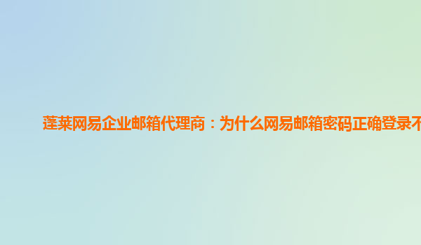2024-02-20为什么网易邮箱密码正确登录不了 企业邮箱代理商背景介绍 蓬莱网易企业邮箱代理商是国内领先的企业邮箱服务商,提供稳定、安全、便捷的企业邮箱解决方案。拥有丰富的经验和专业的团队,为企业用户提供...