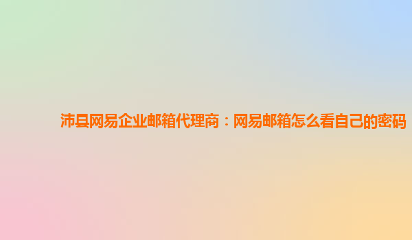 2024-02-19沛县网易企业邮箱代理商:网易邮箱怎么看自己的密码 作为沛县网易企业邮箱的代理商,我们深知企业邮箱在日常办公中的重要性,保护邮箱安全是至关重要的。其中,密码是企业邮箱安全的第一道防线,因此及时更新和管理...