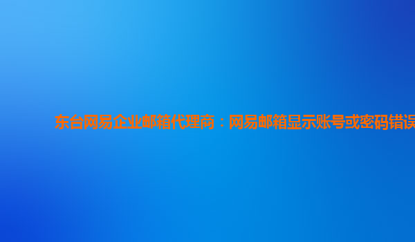 2024-02-20东台网易企业邮箱代理商:网易邮箱显示账号或密码错误 最近有用户反馈在使用网易企业邮箱时遇到了“账号或密码错误”的问题,这是一个比较常见的情况。下面我们来看看如何解决这个问题。 解决方法: 确保输入的...