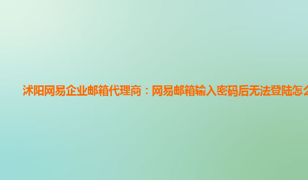 沭阳网易企业邮箱代理商:网易邮箱输入密码后无法登陆怎么回事 随着互联网的快速发展,电子邮件已经成为人们日常生活和工作中不可或缺的一部分。而在企业中,电子邮件更是扮演着重要的角色,方便了企业之间的沟...