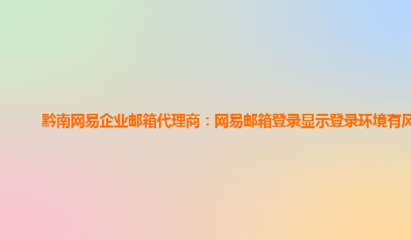 2024-02-18六盘水网易企业邮箱代理商:网易邮箱登录环境有风险 随着现代企业信息化的发展,企业邮箱已成为企业内部沟通和外部联系的重要工具。作为六盘水地区的网易企业邮箱代理商,我们深知企业对于邮箱安全的重视。然而...