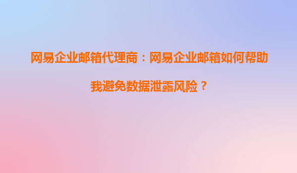 2025-09-16网易企业邮箱代理商:网易企业邮箱如何帮助我避免数据泄露风险? 引言 在数字化办公时代,企业邮箱已成为商业沟通的核心工具,但随之而来的数据泄露风险也让管理者忧心忡忡。作为网易企业邮...