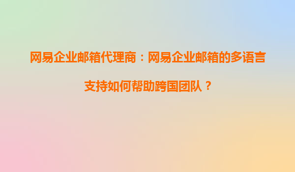 2025-09-16网易企业邮箱代理商:网易企业邮箱的多语言支持如何帮助跨国团队? 一、跨国团队的沟通挑战与需求 在全球化背景下,越来越多的企业组建跨国团队,员工分布在不同国家和地区,语言和文化差异成为日常沟通的...