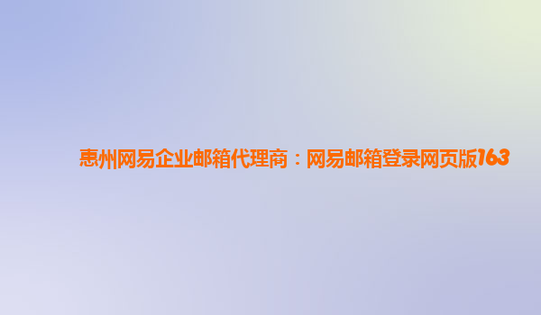 2024-02-17惠州网易企业邮箱代理商:网易邮箱登录网页版163 网易企业邮箱是一款专为企业用户定制的高效、安全的电子邮件服务,提供了包括企业管理、邮箱管理、安全防护等在内的一站式解决方案。作为惠州网易企业邮箱代理商,...